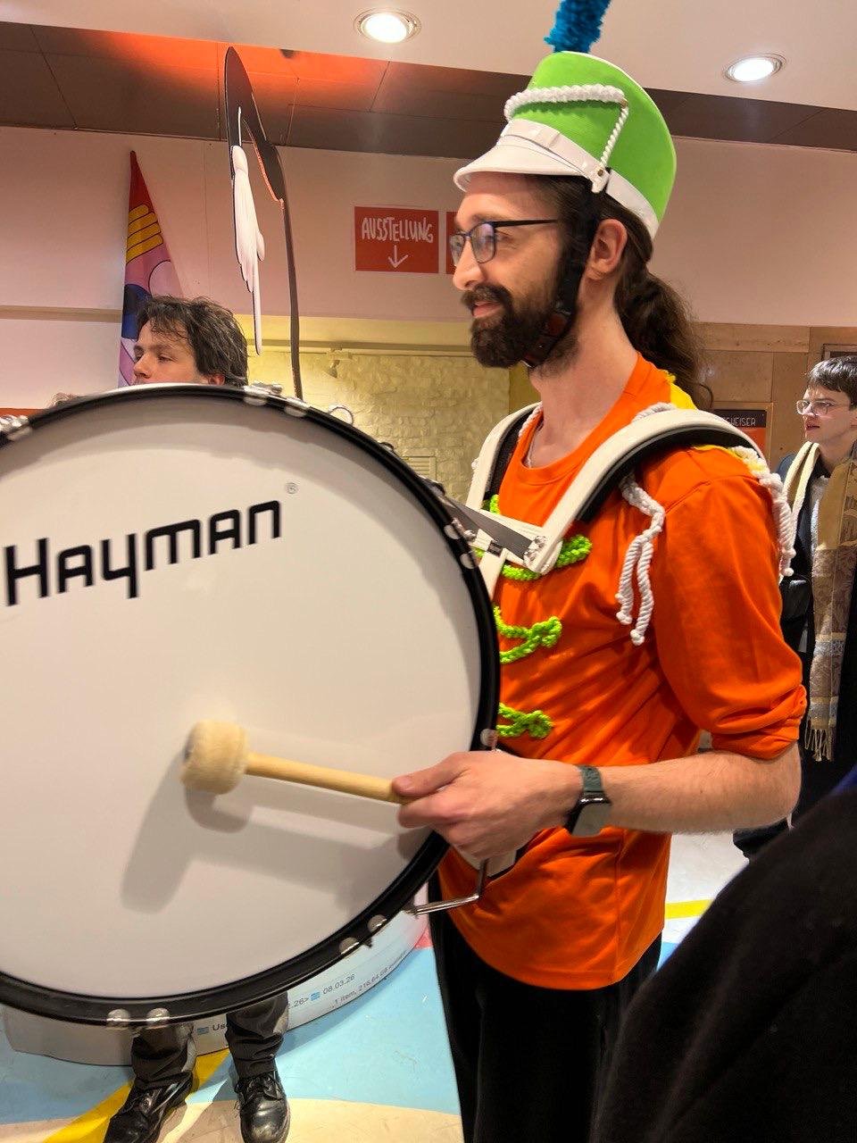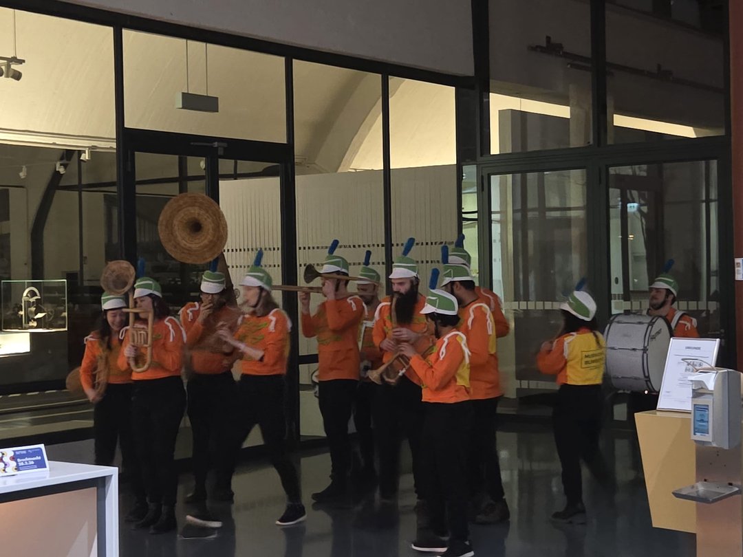 "Das Augsburger Brechtfestival 2026 ist er?ffnet - mit Trommeln und Trompeten. Ein Festzug hat sich am Freitagabend, um 17.30 Uhr, auf den Weg gemacht, vom K?nigsplatz bis zum Zentrum des Festivals in der Karolinenstra?e. Vornweg: Eine Marschkapelle in orangener Uniform, mit selbstgebauten Instrumenten aus Holz und Pappe. Zu ihrem groovigen wie schr?gen Sound und Takt laufen Künstler, Gruppen, Vereine durch die Stra?en, die nun bis zum 8. M?rz das Festivalprogramm gestalten werden. Theater, Musik, Debatten, Workshops: ?Alle“ lautet diesmal das Motto. Inklusion ist das offizielle Ziel. Die neuen Festivalleiter erkl?ren, dass sie ein Fest für und mit Brecht bieten wollen - und für m?glichst viele, verschiedene Menschen, aus allen Altern und Schichten, und ob ohne oder mit Behinderung. ... Gleich wird der Chef der Marschkapelle einz?hlen, ?three, two, one“. Aber zuvor erkl?rt noch ein Papp-Posaunenspieler: ?Wir sind vom Anglistentheater der Uni Augsburg.“?(extract from?AZ?Feb 27; read the full article? here)