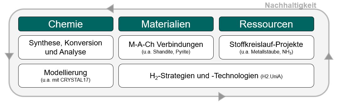 ?Des Weiteren befasst sich der Arbeitskreis zunehmend und intensiv mit Stoffkreisl?ufen verschiedener Ressourcen und Materialien. Unsere Projekte zielen hier darauf ab durch Recycling und Umwandlungen die Ressourceneffizienz und Verfügbarkeit zu erh?hen und zu sichern (u.a. ForCYCLE).