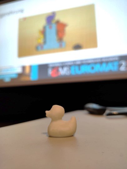 Der Science Slam von Michéle Scholl mit dem Tital "MXimal funktional - Herrscher über das dimensionale Chaos" handelte von der Synthese von MXenen und deren Einsatz in 3-dimensionalen Strukturen. Mit ihrem Vortrag erreichte sie den dritten Platz und durfte sich über eine kleine 3D-gedruckte Troph?e freuen, die das Maskottchen der KaWuM darstellt.