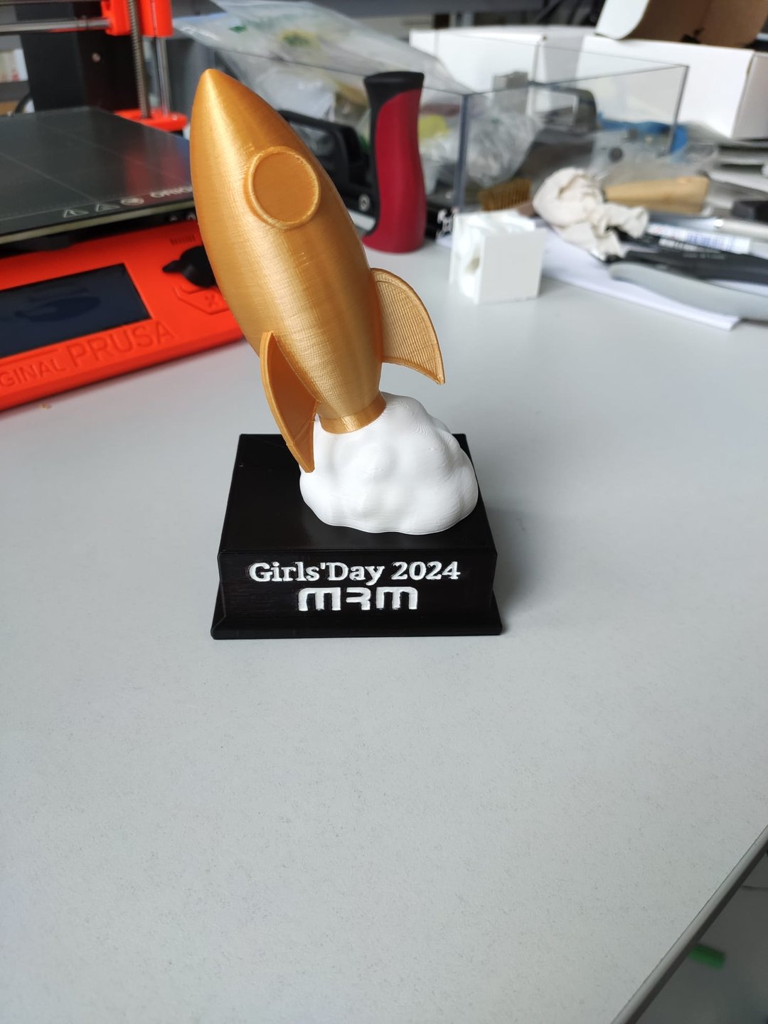 Um den Tag noch spannender zu gestalten, veranstalteten wir einen Flugwettbewerb mit 3D-gedruckten Seifenblasen-Fliegern. Die M?dchen waren begeistert von dieser Idee und hatten viel Spa? beim Testen ihrer eigenen Flugzeuge. Die Gruppensiegerin erhielt einen weitere 3D-gedruckten Flieger, der auch ohne Seifenblasen auskam und die Gesamtsiegerin des Tages bekamm einen gedruckten Pokal, der beim gemeinsamen Mittagessen verliehen wurde.
