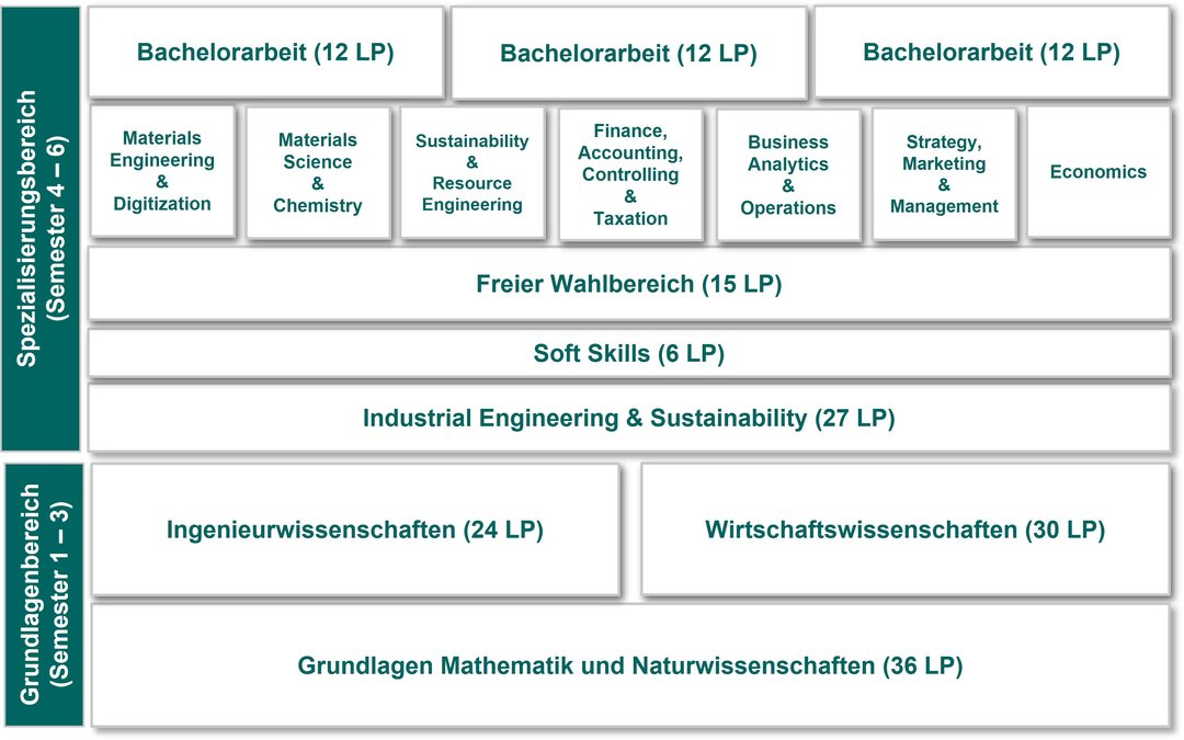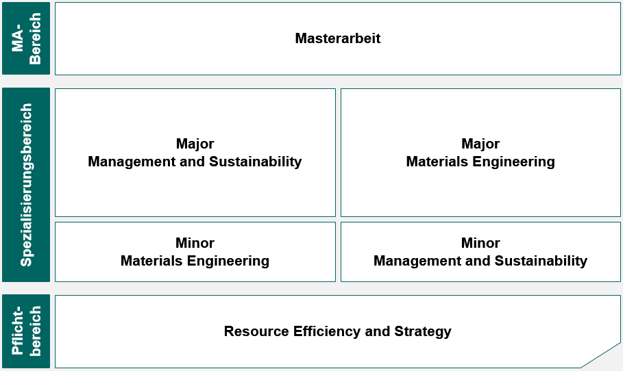 Im Spezialisierungsbereich k?nnen die Studentinnen und Studenten w?hlen, ob sie ihr Wissen im wirtschaftswissenschaftlich ausgerichteten Bereich ?Management and Sustainability” vertiefen wollen oder ihren Interessensschwerpunkt lieber auf das technologieorientierte “Materials Engineering” richten wollen.