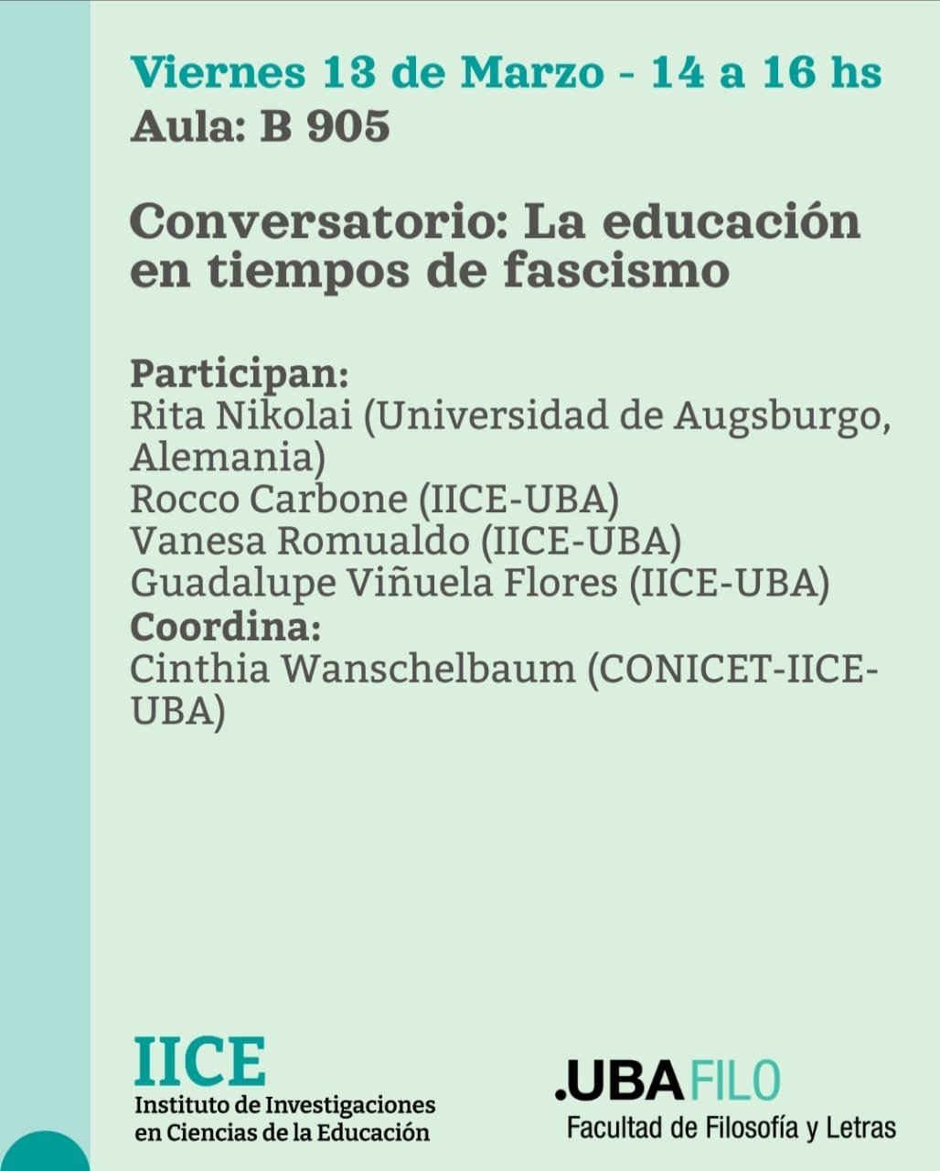 Online-Vortrag am 13.03.2026 von Prof. Dr. Rita Nikolai zu ?School Politics of the AfD” im Seminar“II Seminario Internacional de Investigación en Educación/Conversatorio: La educadión en tiempos de fascimo”?(Internationales Seminar zur Bildungsforschung / Diskussionsrunde: Bildung in Zeiten des Faschismus) an der Universit?t von Buenos Aires/Argentinien.?