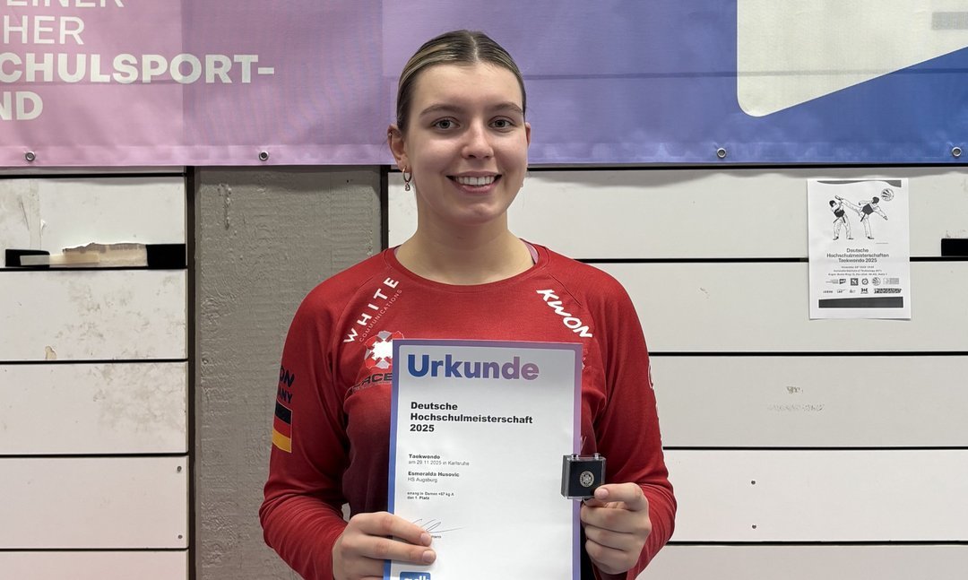 Esmeralda Husovic sicherte sich bei den Deutschen Hochschulmeisterschaften im Taekwondo vom 28.- 29. 11. 2025 in Karlsruhe den Titel der Deutschen Hochschulmeisterin.