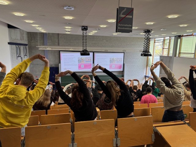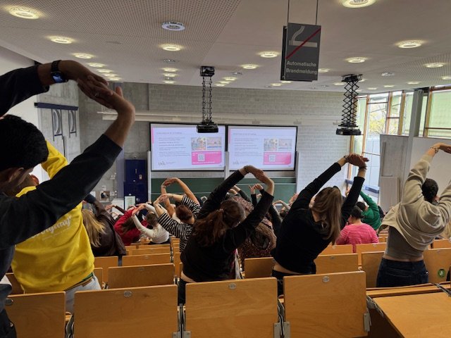 Ein besonderes Highlight war eine kurze Bewegungseinheit, bei der die Erstsemester direkt selbst aktiv werden konnten. Diese sollte nicht nur für einen kleinen Energiekick sorgen, sondern auch zeigen, wie sich Bewegung unkompliziert in den Studienalltag integrieren l?sst.