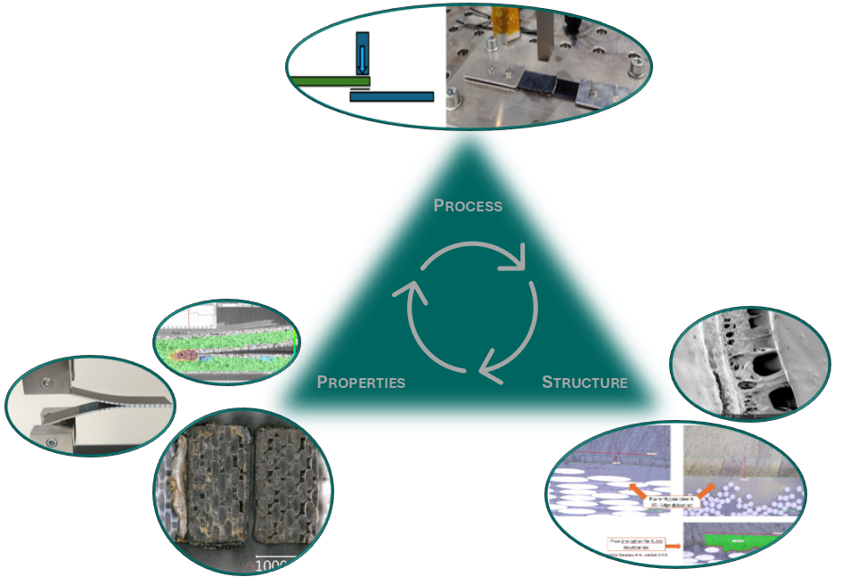 A further research topic is the optimization of the interphase. The aim is to develop targeted measures and process strategies to facilitate, improve, and accelerate interphase formation. This provides the basis for robust and reproducible joining solutions between thermoset and thermoplastic materials, enabling reliable hybrid lightweight structures for industrial applications.