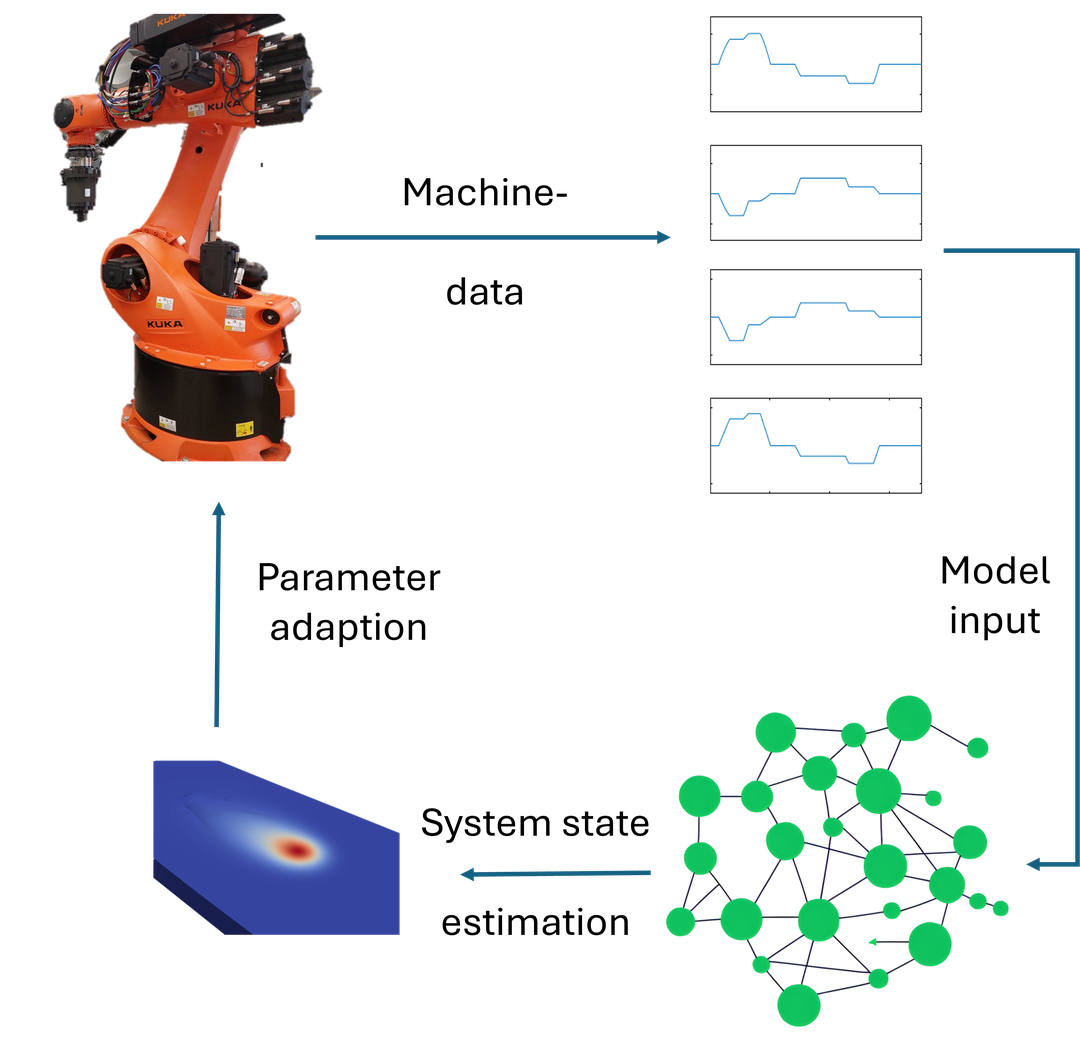 Overall, SCOPE establishes a digital twin architecture that continuously synchronizes sensor data, simulation models, and data-driven intelligence, providing a virtual representation of the process that supports monitoring, prediction, and forms the basis for adaptive control throughout the production lifecycle.