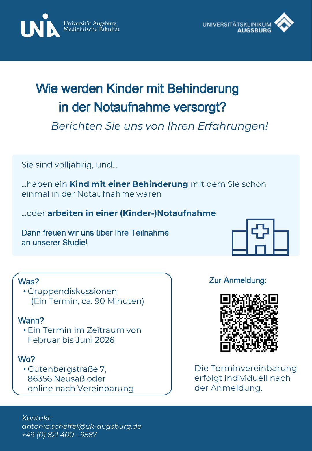 Einladung zur Studie ?Versorgung von Kindern mit Behinderung in der Notaufnahme (KiNoa)