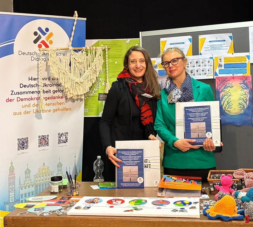 Gemeinsam mit dem Deutsch-Ukrainischen Dialog e.V. untersuchen Dr. habil. Tetyana Hoggan-Kloubert und Nicole Luthardt, wie die Integration von Ukrainerinnen und Ukrainern in Augsburg durch die Einbindung in bzw. die Etablierung neuer ehrenamtlicher Projekte? gef?rdert werden kann, um den Zusammenhalt in der Stadtgesellschaft zu st?rken. Dazu werden Materialien und Geschichten von geflüchteten ukrainischen Frauen gesammelt, die in einer Ausstellung gezeigt und für p?dagogische Projekte und Fachkr?fte aufbereitet werden. Darüber hinaus wird eine Handreichung zu kommunalen Bildungslandschaften erstellt.?