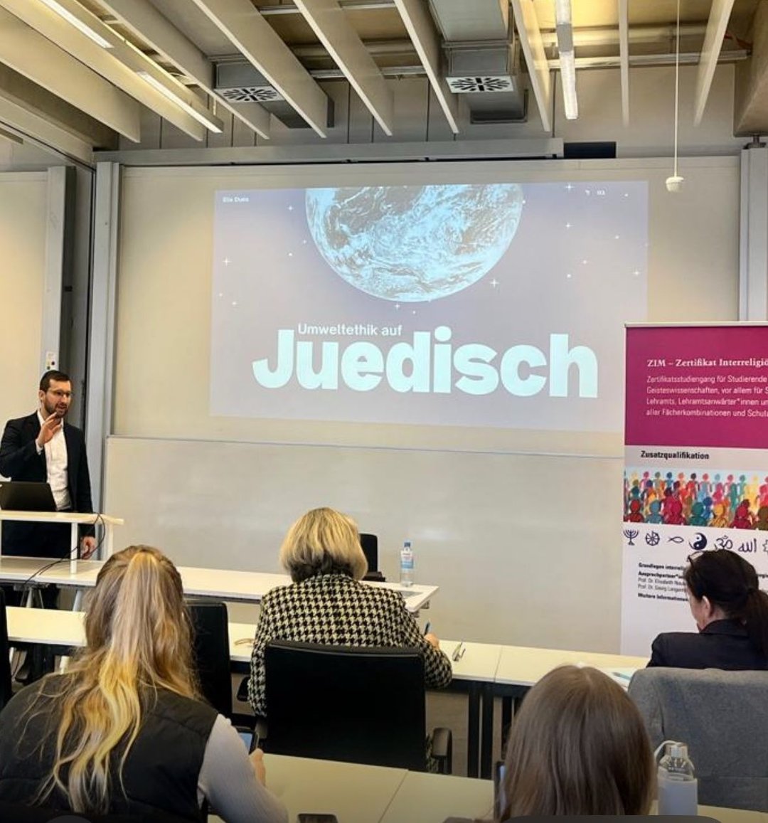 Die Studierenden waren begeistert! Im Rahmen einer überaus inspirierenden Veranstaltung durften sich die Zuh?renden intensiv mit der Frage besch?ftigen, wie jüdische Umweltethik Antworten auf die ?kologischen Herausforderungen unserer Zeit geben kann. Der Gastreferent Elie Dues (Politologe, Umweltwissenschaftlicher und derzeit in der Ausbildung zum Rabbiner) zeigte ausgehend von Texten der Thora, welchen Beitrag jüdische Umweltethik zur aktuellen ?kologischen Debatte leisten kann. Denn der verantwortungsvolle Umgang mit der Sch?pfung ist nicht nur eine ?kologische, sondern auch eine ethische und spirituelle Aufgabe. Gerade der interreligi?se Dialog er?ffnet hier neue Perspektiven und f?rdert gegenseitiges Verst?ndnis. Darüberhinaus wurden auch wertvolle Erl?uterungen zu grundlegenden Begriffen und Handlungen des jüdischen Glaubens eingeflochten und den interessierten Zuh?renden quasi 'to-go' mitgegeben.