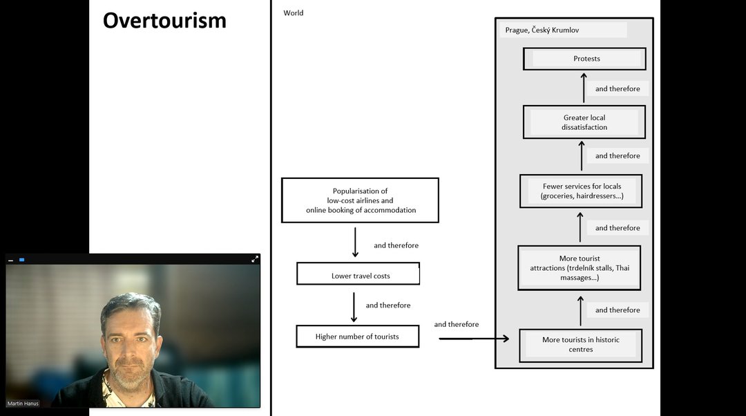 Der A.LEAP-Kooperationspartner Prof. Dr. Martin Hanus von der Karlsuniversit?t Prag erarbeitete auf Einladung von Prof. Dr. Ulrike Ohl per Zoom mit den Studierenden auf motivierende Weise, wie sie gezielt die F?higkeiten ihrer (zukünftigen) Schülerinnen und Schüler zum Concept Mapping und zum vernetzten Denken trainieren k?nnen. Concept Maps sind Visualisierungen, die vernetzte Mensch-Umwelt-Beziehungen wiedergeben, wie sie für viele geographische Themen typisch sind.?