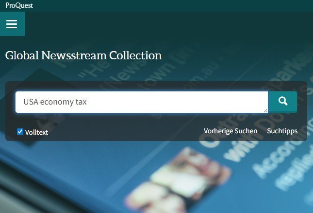 Ab sofort k?nnen alle Universit?tsangeh?rigen die Datenbank?Global Newsstream nutzen. Greifen Sie auf internationale Nachrichteninhalte aus über 3.800 Zeitungen, Fernseh- und Radiosendungen, Blogs, Podcasts und Websites zu.