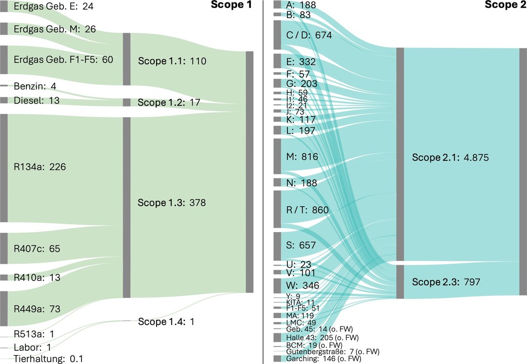 Der überwiegende Teil der Emissionen entf?llt auf Scope 3, insbesondere auf den Pendelverkehr Studierender und Besch?ftigter, auf Bauaktivit?ten sowie auf Reiset?tigkeiten. Die direkten Emissionen in Scope 1 spielen im Vergleich zu Scope 2 und Scope 3 auf den ersten Blick eine eher untergeordnete Rolle, deren Reduktion jedoch im Rahmen eines verantwortungsbewussten universit?ren Klimaschutzmanagements nicht minder wichtig ist.