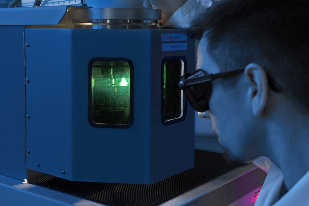 A large electrical current between electrode and sample ionizes an inert gas creating a high-temperature plasma. This allows to melt and mix elements and compounds with high melting points of more than 3000°C or to seal tantalum and niobium crucibles.