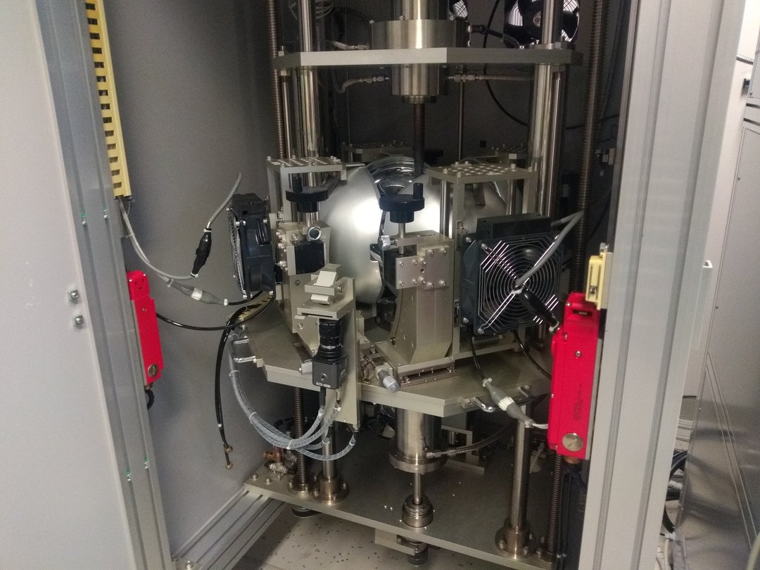 A powerful light source and focusing mirrors create temperatures of more than 2000°C at the sample position. Mainly used for single crystal growth of high-melting compounds (congruently melting with low vapor pressure).