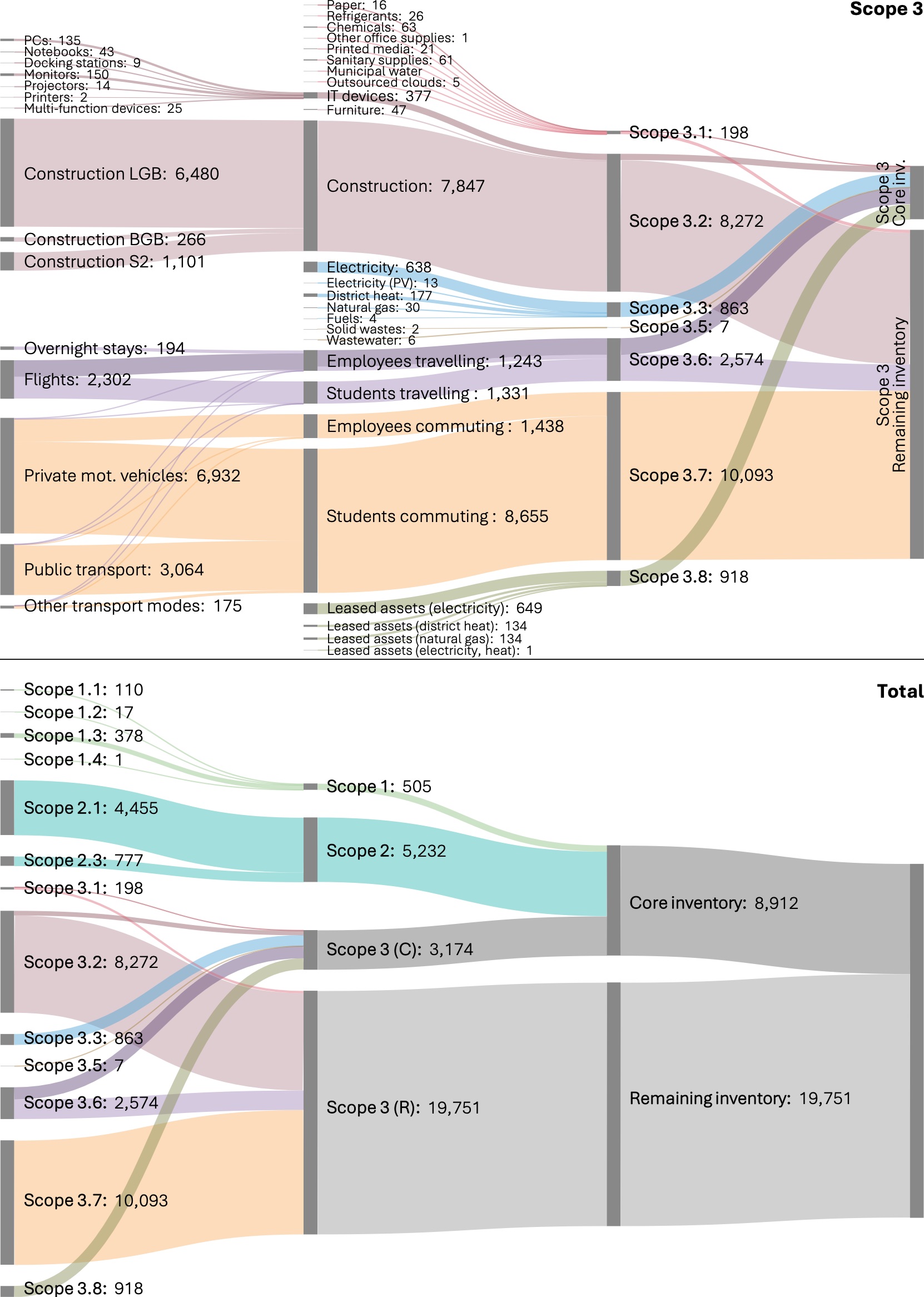 - Scope 3: Other indirect emissions (including mobility, construction, procurement, leased assets, as well as business and student travel)